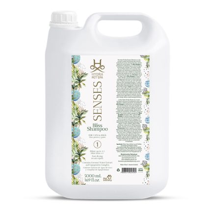 Hydra – Hydra Senses Bliss Shampoo 5L פורמולה מרוכזת זו כוללת תמצית מי קוקוס, המספקת לחות עזה ורענון, ברק זוהר ורכות. בנוסף לתערובת הליפו-פרוטאין המחדירה לחות ומתקנת את הפרווה, החומר נשטף בקלות ומקצר את זמן הייבוש. • פורמולה מרוכזת (4:1) • מכיל תמצית מי קוקוס עם פעולה לחותית ומרעננת, המעניקה ברק ורכות לפרווה; קומפלקס ליפופרוטאין המקדם לחות עמוקה ושיקום הפרווה • ייבוש מהיר ושטיפה קלה • מתאים לכלבים וחתולים מכל הגזעים מעל גיל 4 שבועות